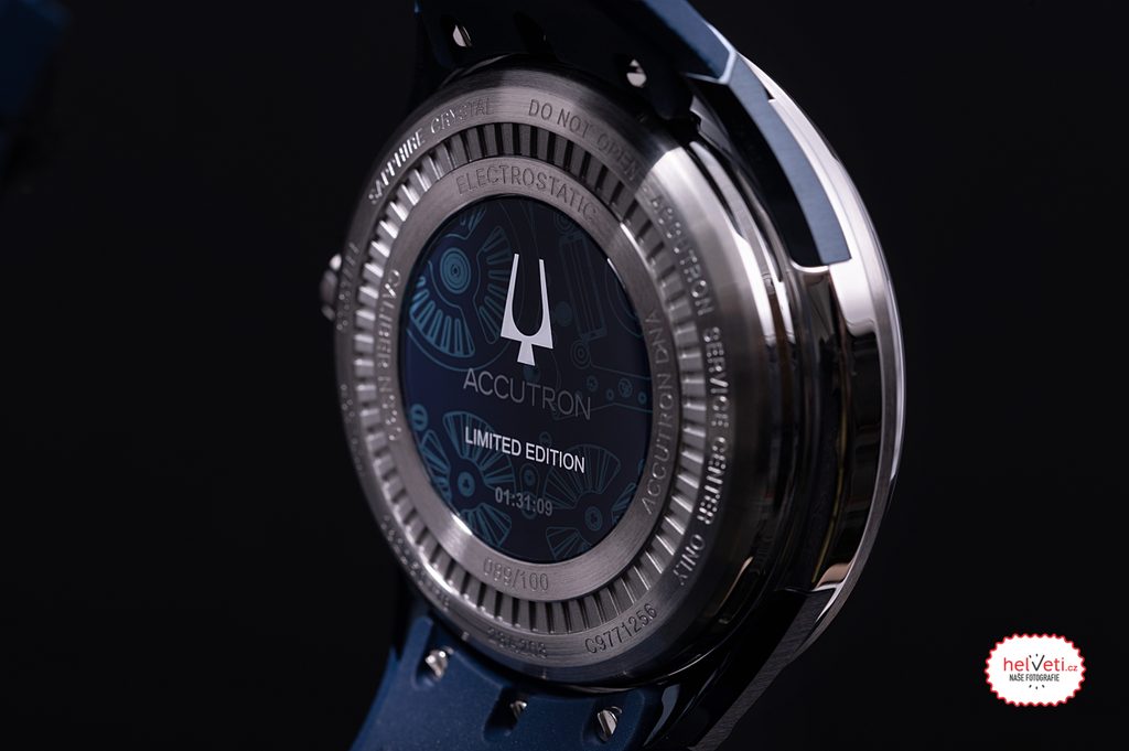 The Accutron DNA is a unique watch that is once again ahead of its time, featuring a custom electrostatic-powered movement with an intricately designed stepper motor system. A great detail is the rotors of the electrostatic motors, which generate energy and take the form of turbine blades. The 28-stone electrostatic movement is designated NS30-Y8A. The movements for the Accutron models are manufactured at the Miyota factory in Nagano Prefecture, Japan (Miyota is part of the Citizen Group, as is the Bulova brand). The movements are assembled under special conditions in a dust-free and temperature-controlled environment. Electrostatic energy is used to ensure the smooth running of the seconds hand and the battery-powered movement as a whole, while the minute and hour hands are powered by two conventional stepper motors.