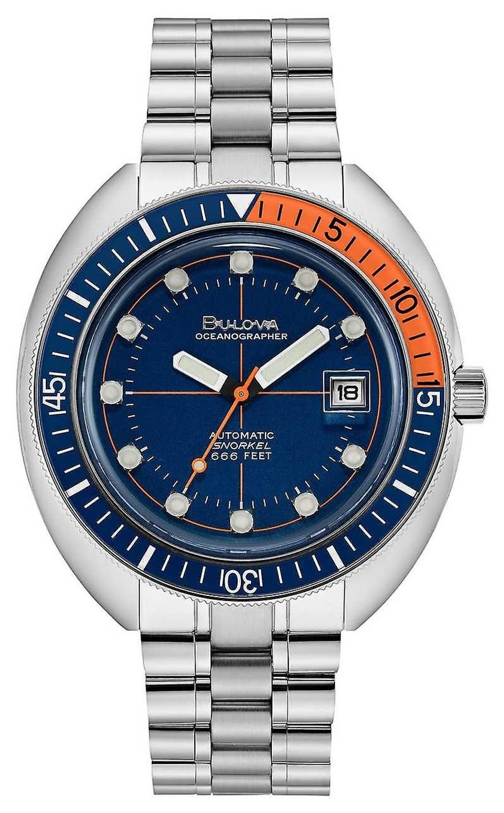Bulova Oceanographer Devil Diver 96B321 is made in a purely "diver" style, which is confirmed by the "devil" water resistance of 666 feet (200 meters). However, they also serve well for everyday wear. The design of this model is based on the successful Bulova Oceanographer from the 1970s.