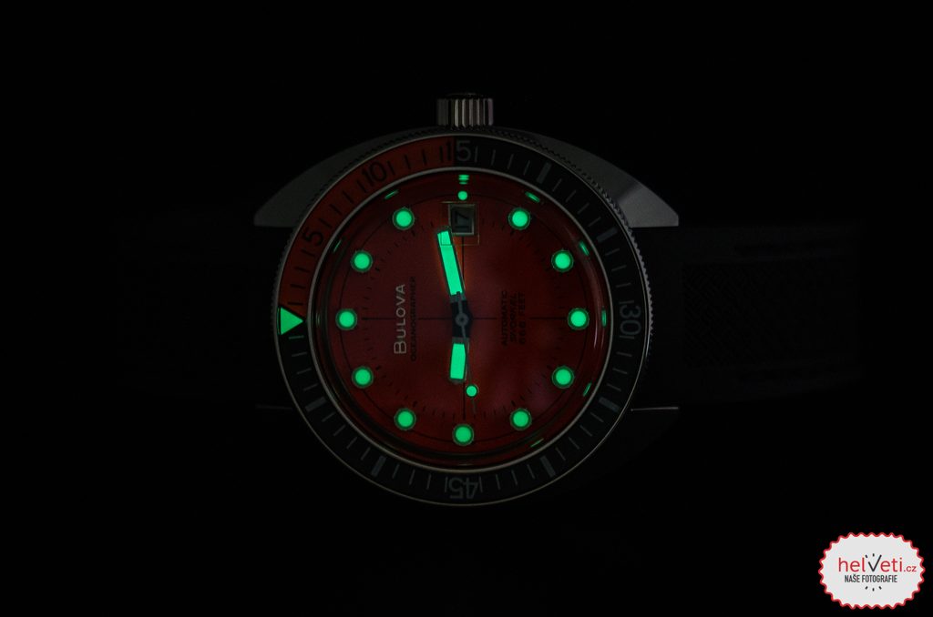 The Bulova Oceanographer Devil Diver 96B350 is made in a purely "diver" style, which is confirmed by the "devil" water resistance of 666 feet (200 meters). However, they also serve well for everyday wear. The design of this model is based on the successful Bulova Oceanographer from the 1970s.