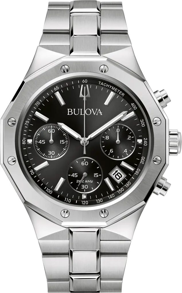 The Bulova brand is not idle and continues to offer top products in the field of precision. The offer includes a high performance quartz movement operating at a high frequency (262 kHz) with an accuracy of about 10 s per year, or the Curv movement, which is also the first curved movement with a chronograph in the world.