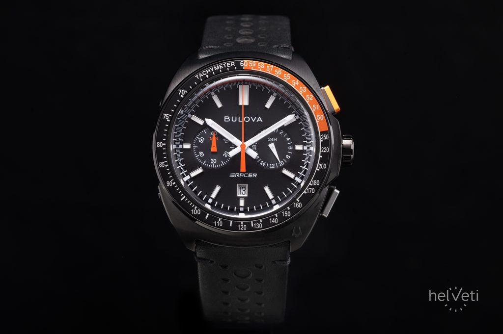 Bulova Racer Chronograph 98B428 watches first of all attract attention with a design that does not deny the inspiration in the world of motorsport. Built on the brand's history in motorsport - from minicar racing to the highest levels of motor racing - the Racer Chronograph is a stylish expression of the brand's racing history and passion for speed.
