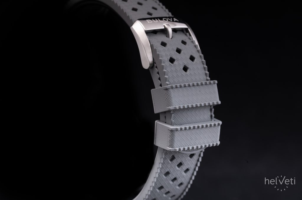 The 41 mm diameter watch case, suitable in its dimensions for both men's and women's wrists, is complemented by a rubber strap finished with a thorn buckle. The strap is equipped with a quick-release system, making it a breeze to change. The water resistance of the model is 100 m, so you can safely swim and indulge in other water activities. The novelty perfectly balances style and functionality with a reference to the rich history of the Bulova brand.