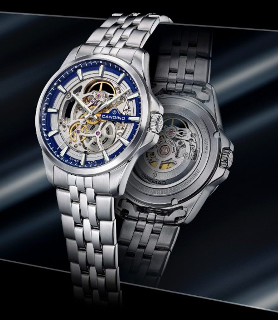 The case of the Candino Automatic C4781/1 is made of stainless steel. Inside, a Swiss mechanical movement with automatic winding works reliably, whose action can be enjoyed thanks to the skeletonised dial design. The hands and indices are coated with Superluminova luminescent coating for better legibility in low-light conditions. All protected by a scratch-resistant sapphire crystal.