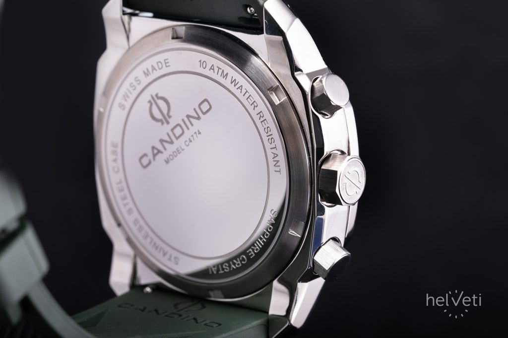 The 44 mm case diameter makes the Candino Gents Sport C4774/5 a great choice for fans of larger watches. The 10 ATM water resistance rating indicates that you can go swimming or snorkeling with the watch.
