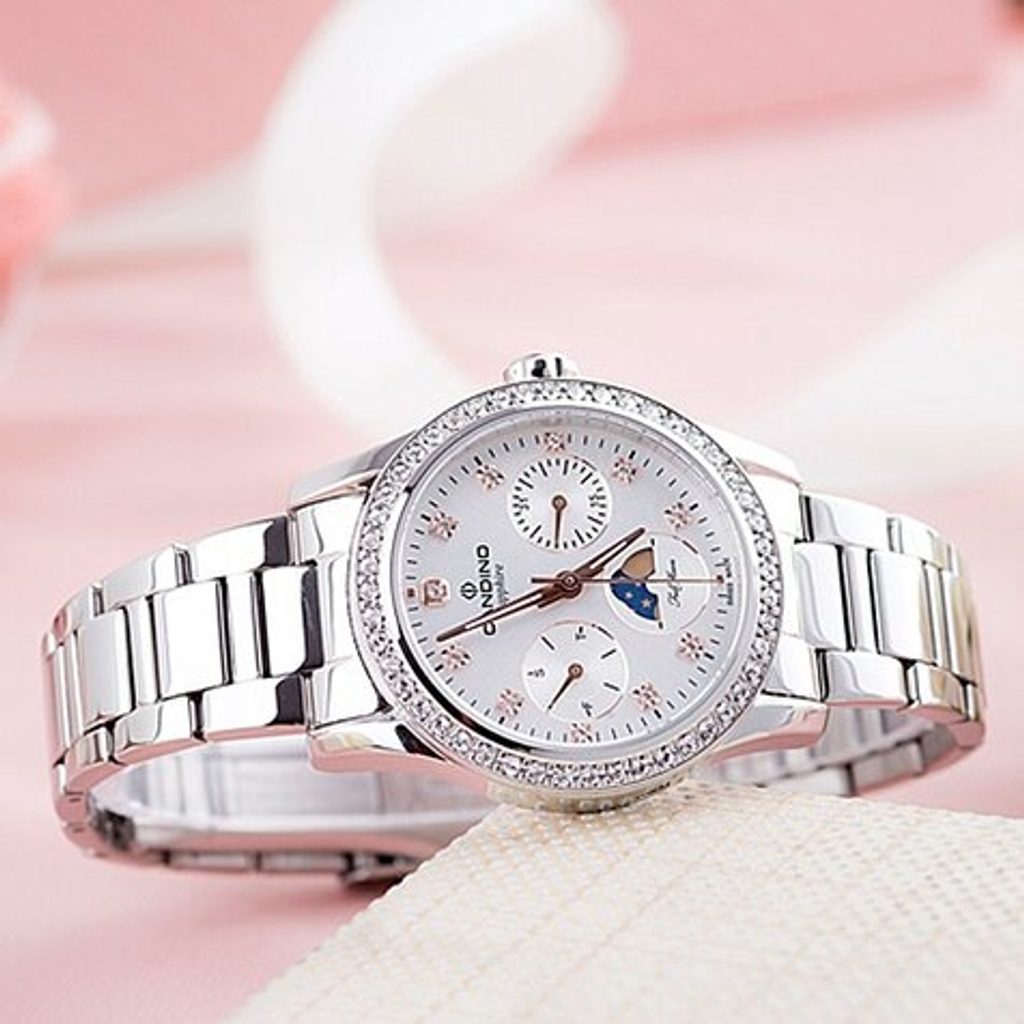 The luxurious look of the watch is set by the case and the stainless steel movement. This functional watch also displays the day of the week, the current day of the month and even features a moon phase indicator. There are also luminescence hands. All this is protected by saffir glass, which is extremely scratch-resistant. In addition, a battery Swiss movement is hidden inside the watch. The 5 ATM water resistance ensures that the watch will not be harmed by rain, hand washing or evening showers.