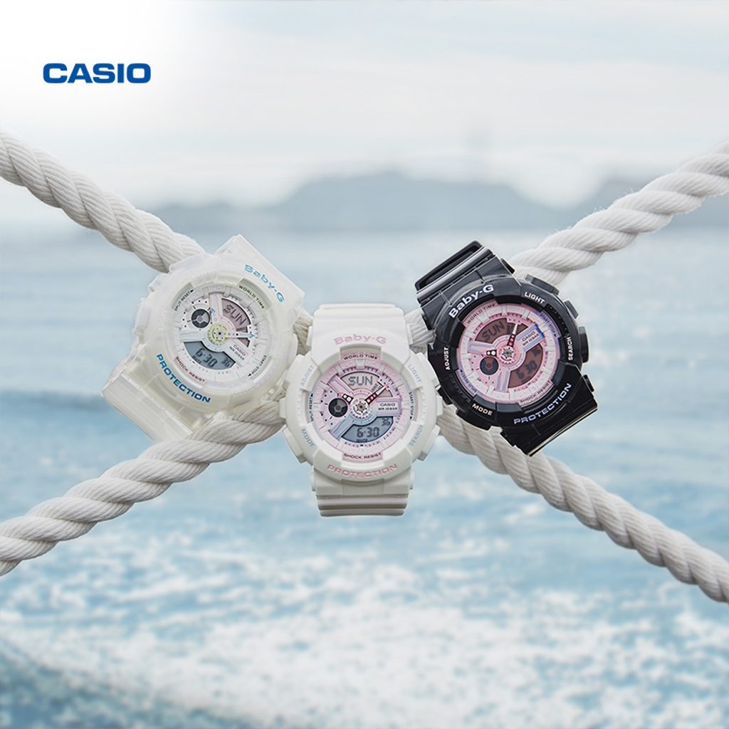 The Casio Baby-G range offers a suitable watch for women looking for a combination of a durable sports watch in an attractive design, coupled with a rich range of features. All models in this globally popular range are more shock and impact resistant than conventional watches. They also demonstrate increased resistance to magnetic fields.