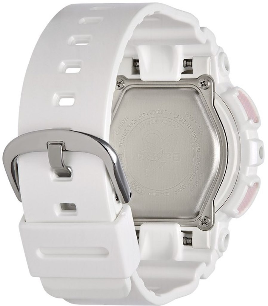 Casio Baby-G BA 110SC-2A has a combined dial (analog and digital) that displays date, day of the week, stopwatch, alarm clock and many other features that can come in handy in an active lifestyle. The watch case, including the strap, is rubber. The dial is protected by a mineral glass. The diameter of the case 43.4 mm makes it one of the larger ladies' watches. Water resistance of this model is 200 m, so you can run into the shower after a hard workout with the watch, but also swim without any problems.