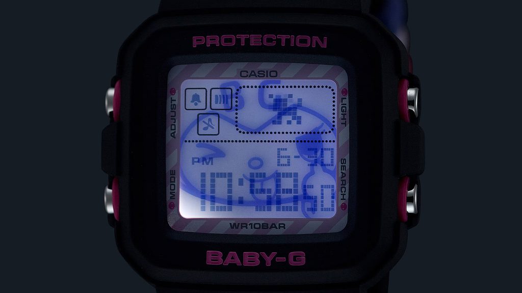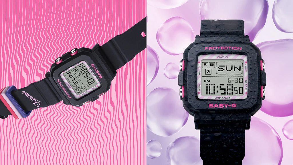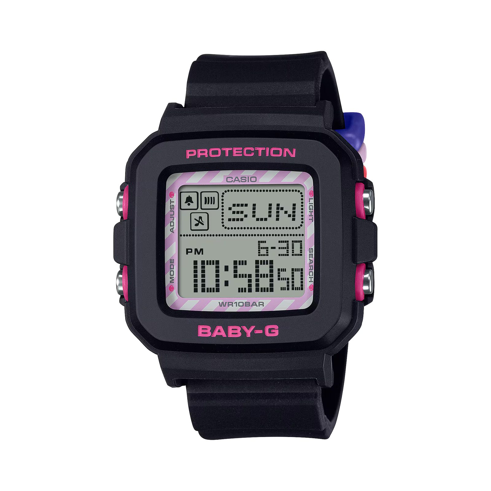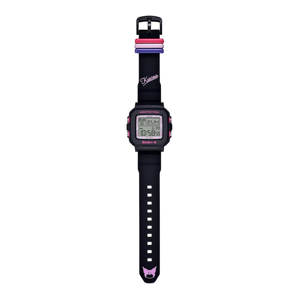 Casio Baby-G BGD-10KKM-1ER Kuromi watches are square in shape and combine classic black with pink and purple elements.