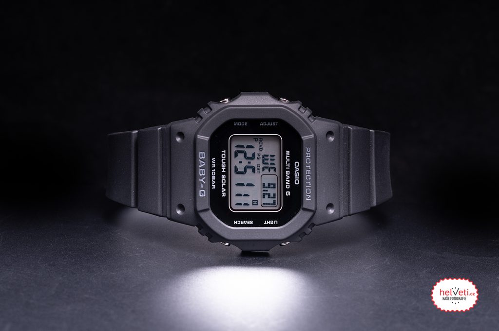 TheCasio Baby-G BGD-5650-1ER has a digital display that shows the date, day of the week, stopwatch, alarm and many other functions. They also have a function to light up the display when the alarm is activated, the countdown is completed, the hour signal. The watch case, including the strap, is rubber. The display is protected by a mineral glass. This model has a solar-powered and radio-controlled movement, guaranteeing constant running accuracy and long battery life. Thanks to the 37.9 mm case diameter, it is a sports watch that will be suitable for women's wrists. The water resistance of this model is 100 m, so you can swim with the watch without any problems.