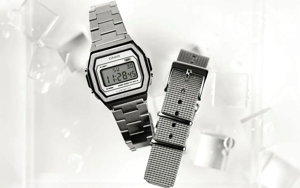 Casio A1000DN-7 have a digital display that shows the time, date, day of the week, stopwatch, alarm and 12/24 hour format. The watch also features LED display illumination. The calendar on the watch is fully automatic, so you don't have to worry about adjusting it over time. The steel case of the watch is complemented by a classic link steel bracelet, and the watch package also includes a grey textile NATO strap. The display is protected by a mineral glass. The 38 mm case diameter makes the watch one of the smaller ones. The water resistance of this model is 30 m - suitable at most for accidental contact with water during hand washing and rain.
