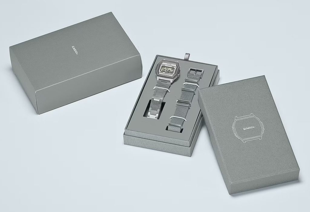 The watch comes in a special package with an extra grey textile NATO strap.