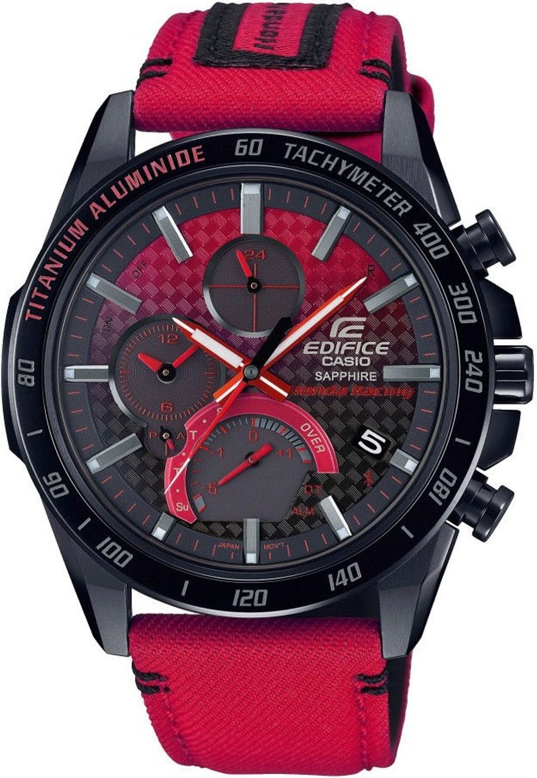 The Casio Edifice EQB-1000HRS-1AER is the latest model from the Limited Edition F1 Honda Racing for 2019, a fusion of the watchmaking and motorsport worlds, its design combines dynamism, passion for speed and passion for racing. The Casio Edifice EQB-1000HRS-1AER is characterised by three features that you will appreciate in sport and everyday wear, solar-powered, a carbon dial and the ability to connect to your phone via Bluetooth.
