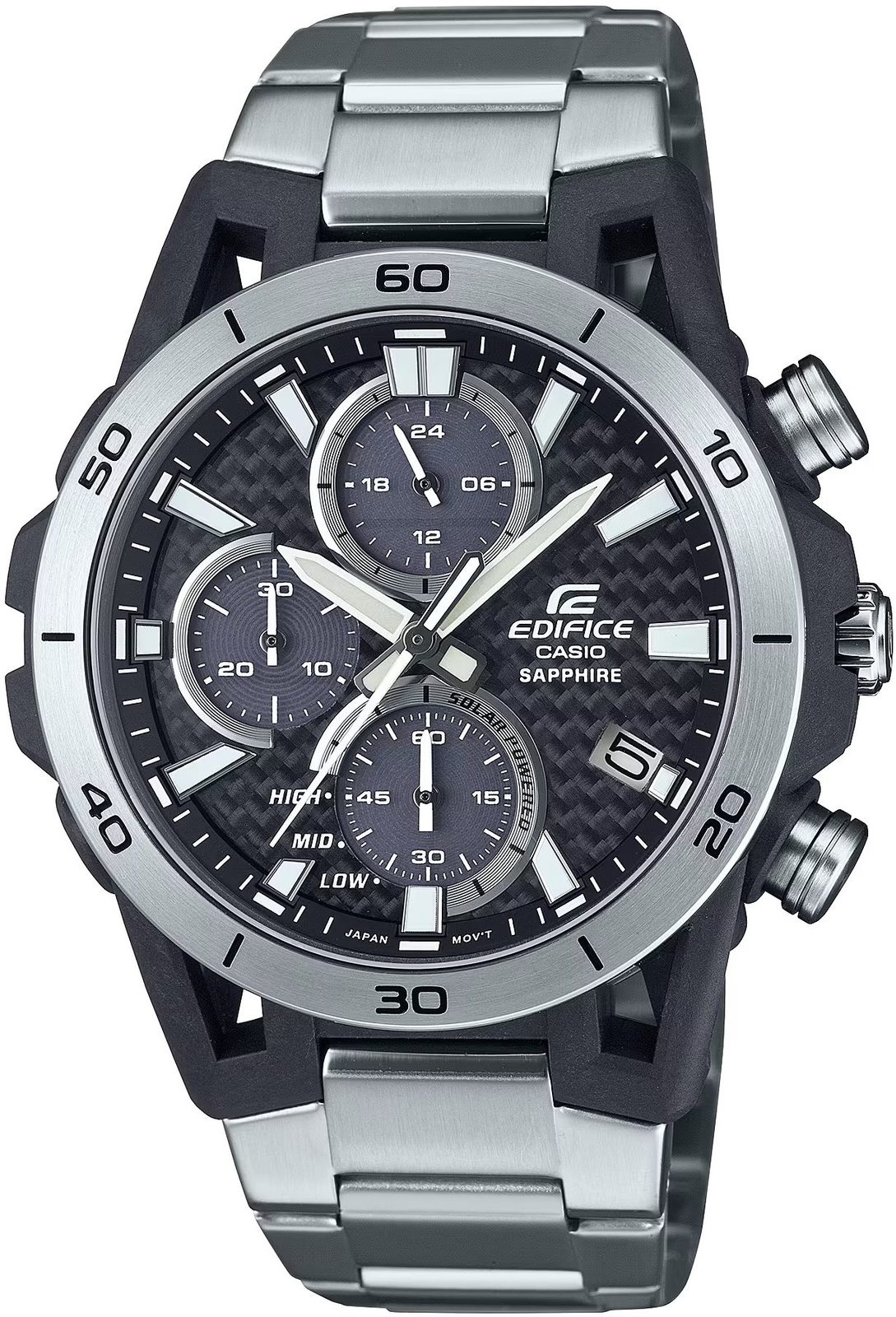 The Casio Edifice Sospensione EFS-S640D-1AVUEF is a men's sports watch with a range of useful functions, wrapped in an attractive, modern-looking case, newly combining carbon and steel.