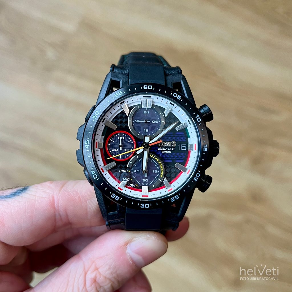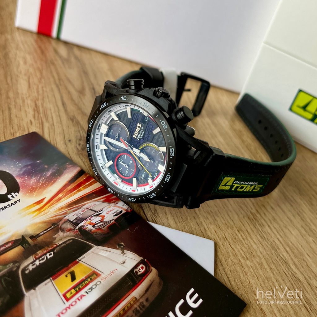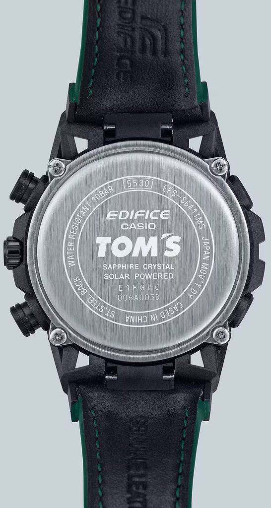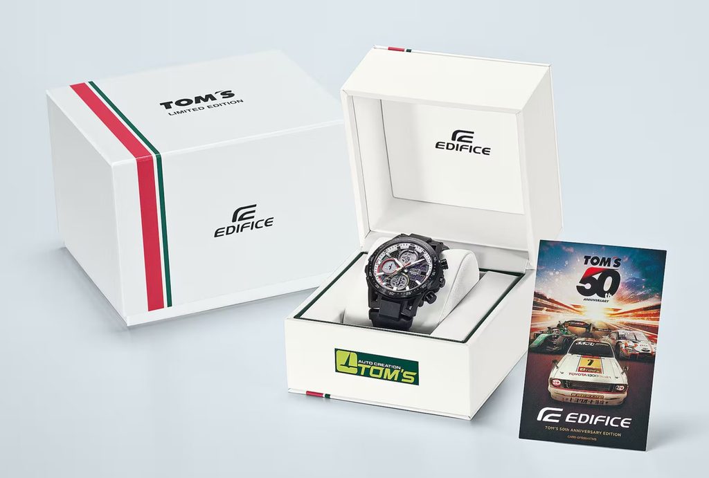 The Casio Edifice Sospensione EFS-S641TMS-1AER TOM'S 50th Anniversary Edition is a special edition commemorating 50 years since the founding of the TOM'S racing team, best known for the Super GT and Super Formula series, and pays tribute to the TOM'S KP47 Starlet from the early days of TOM'S Racing.