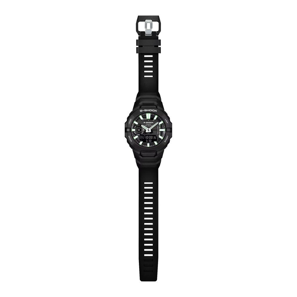 The Casio G-Shock GBA 950-1A has a combined dial (analog and digital) that displays the date, day of the week, stopwatch, alarm and many other functions. Already standard is a built-in pedometer and the ability to connect to your phone via Bluetooth, so you can easily track your daily activity. The watch is complemented by a newly developed strap that makes the watch fit even better on the wrist. The watch case, including the strap, is made of resin.