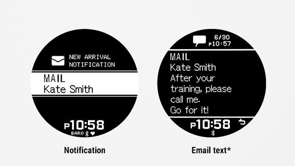| Functions | Date, Day of the week, Stopwatch, Compass, Alarm clock, Backlight, GPS controlled, Bluetooth, Thermometer, Altimeter, Barometer, Pedometer |