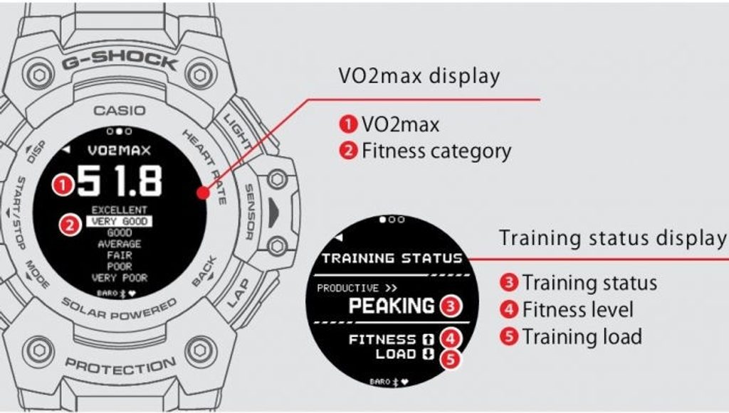 Casio G-Shock G-Squad GBD H1000-1 belongs to the group of highly anticipated G-Shock models designed for athletes. Thanks to its inclusion in the G-Shock family, it comes , as we have come to expect from the series, with a craftsmanship that makes the watch stand up to even the toughest conditions. It is resistant to shock, water, mud, dust, low temperatures. They are equipped with a number of basic functions important for staying in nature - compass, thermometer, barometer, altimeter, pedometer. Newly introduces optical heart rate sensor located on the watch face. It gives you an overview of your current heart rate, heart rate zone, VO2 max, etc. As with most good sports testers, there is also GPS navigation, which provides data on location, speed, distance covered, in conjunction with the application, it is possible to analyze the route traveled on the phone, compare performance and shift in fitness. Casio has used Firstbeat analytics technology (used by e.g. Garmin) in this watch, helping to set up workouts correctly and make it easier to achieve goals.
