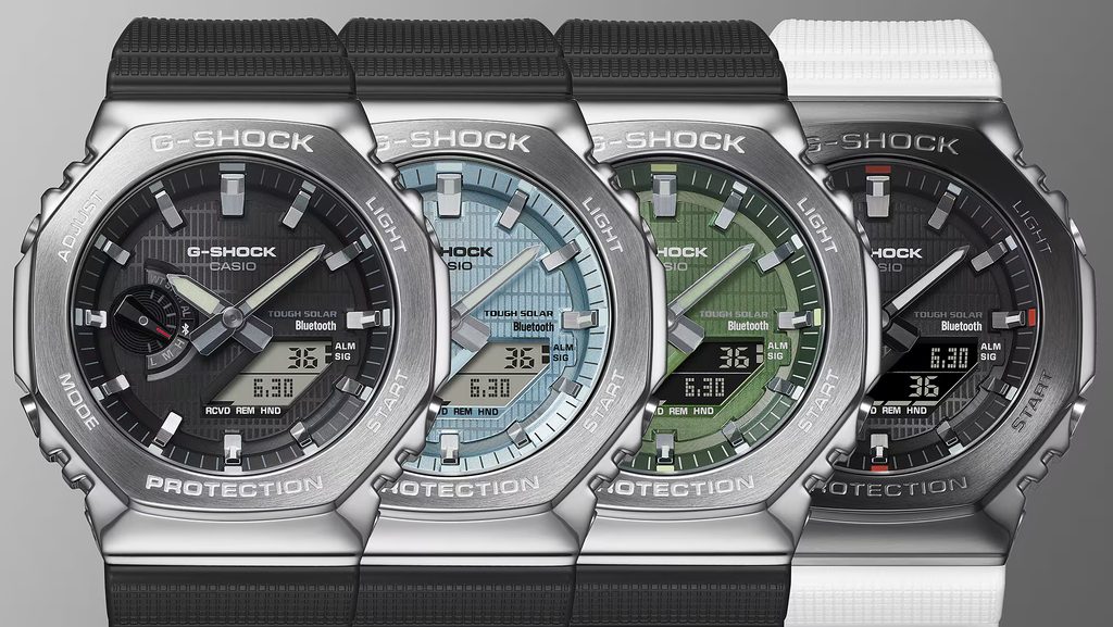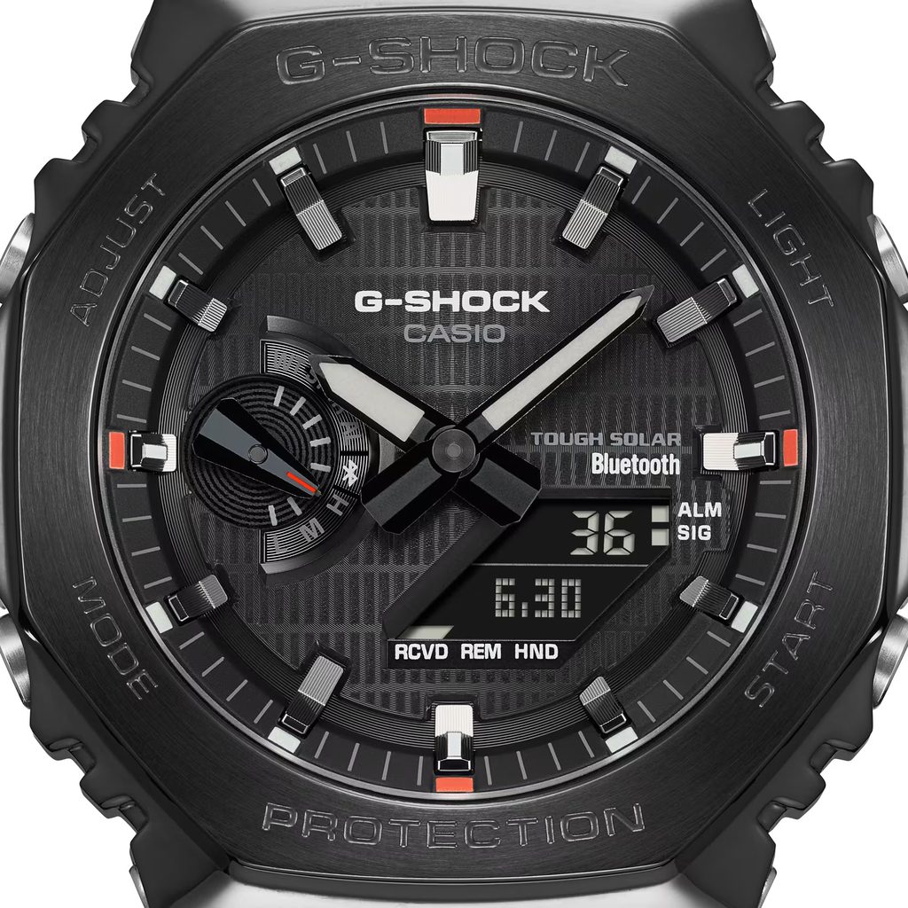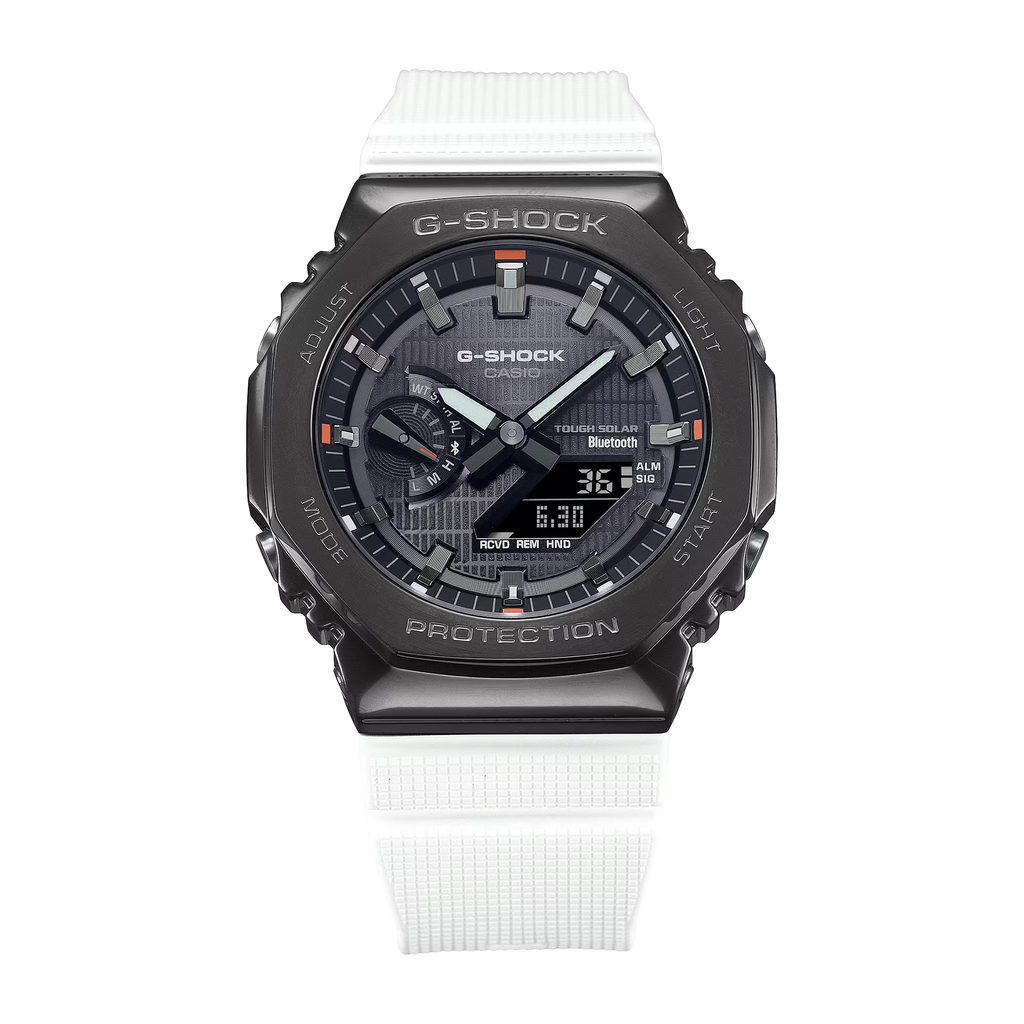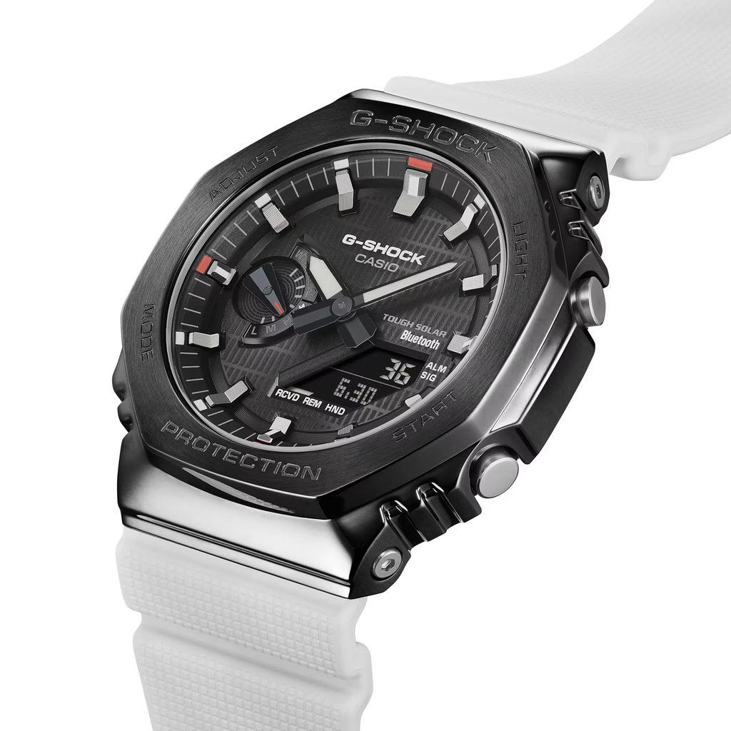 The Casio G-Shock GBM-2100B-7AER is an addition to the popular "CasiOak" series, which features an octagonal case and brings solar power and Bluetooth connectivity to the steel-cased variants.