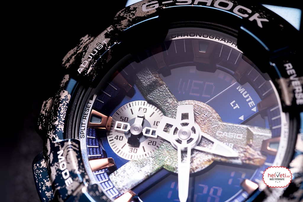 Casio G-ShockGGM 110EARTH-1A is a model from the GM-110 series, which complements the plastic cases with a metal element in the form of an outer case. The watch face is protected by a mineral crystal and features a combined time display (analogue and digital), alongside which it displays the date, day of the week, stopwatch, alarm and other functions. In low-light conditions, you will appreciate the LED illumination and luminescent hands. A rubber strap completes the watch case. The 48.8 mm case diameter makes it one of the larger watches. The water resistance of this model is 200 m, so you can swim with the watch without any problems.