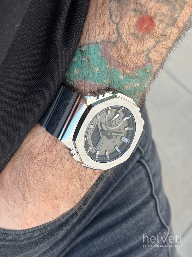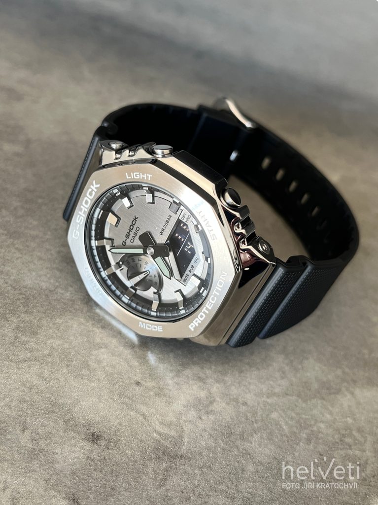 The Casio G-Shock GM-2100-1AER is an addition to the popular "CasiOak" series, which features an octagonal case. Newly made of steel and with a smaller diameter.