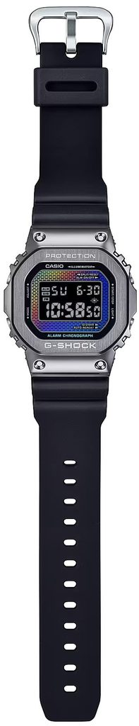 The Casio G-Shock GM-5600BRW-1ER Rainbow Brick Wall Series continues the tradition and proven shapes that have been with us for 40 years and extends the range of models with steel cases. The model adopts the popular square case of the Casio G-Shock DW 5000 from 1983.