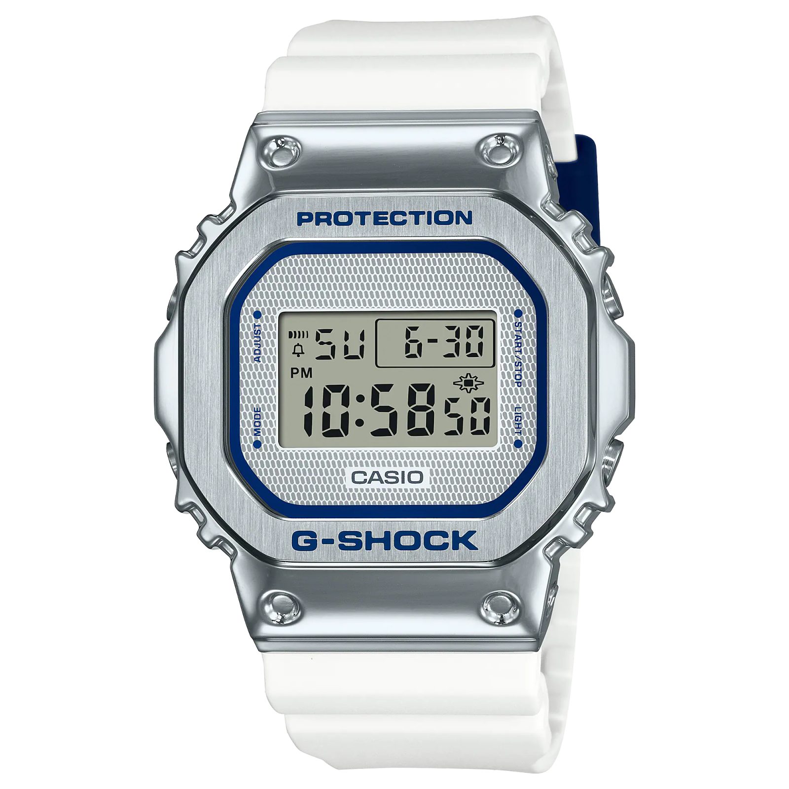 The watch has a digital display that shows the date, day of the week, stopwatch, alarm and other functions. The durable steel case is complemented by a white rubber strap. The display is protected by a mineral glass and decorated with a bezel with a grey pattern that resembles the texture of fabric. For easy readability in low-light conditions, the watch is equipped with a backlight display. The display lights up to alert you when the countdown is complete, the hour signal, the alarm time is set, etc. The 43 mm case diameter makes it one of the larger watches. The water resistance of this model is 200 m, so you can swim and enjoy other water activities without any problems. With this model, Casio brings its fans another steel G-Shock model from the regular series after the great success of the limited editions.