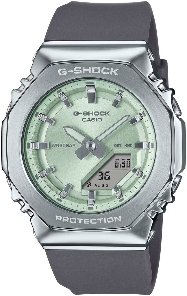 The Casio G-Shock GM-S2110-3AER is an addition to the popular women's "CasiOak" line, which features an octagonal case that brings shorter straps to slim women's wrists.
