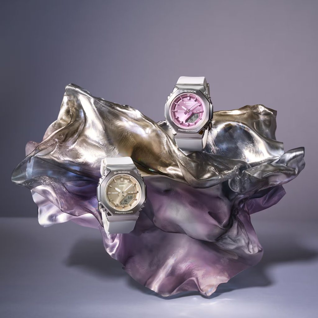 The Casio G-Shock GM-S2110-7A9ER is an addition to the popular women's "CasiOak" line, which features an octagonal case that brings shorter straps to slim women's wrists.