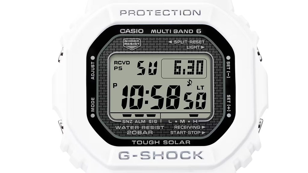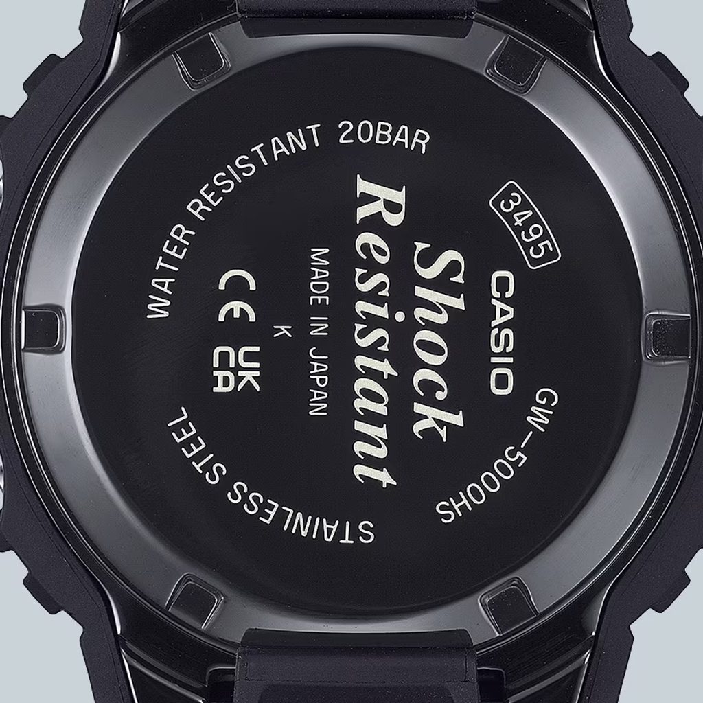 The Casio G-Shock GW-5000HS-7ER is reminiscent of the first G-Shock model in its design, while also featuring the most advanced technologies, such as a solar-powered and radio-controlled movement. The watch has inherited the design elements of the first G-Shock. As with the prototype, the GW 5000HS-7 model's case is a combination of a rubber case and a steel core, and the area around the digital display is decorated with a brick wall pattern.