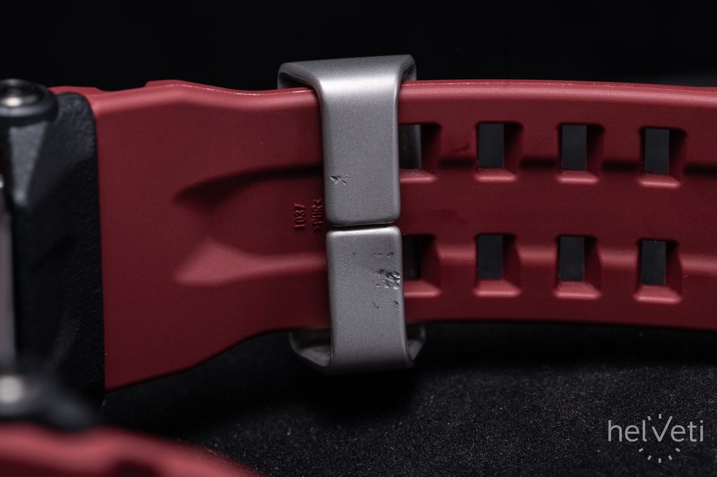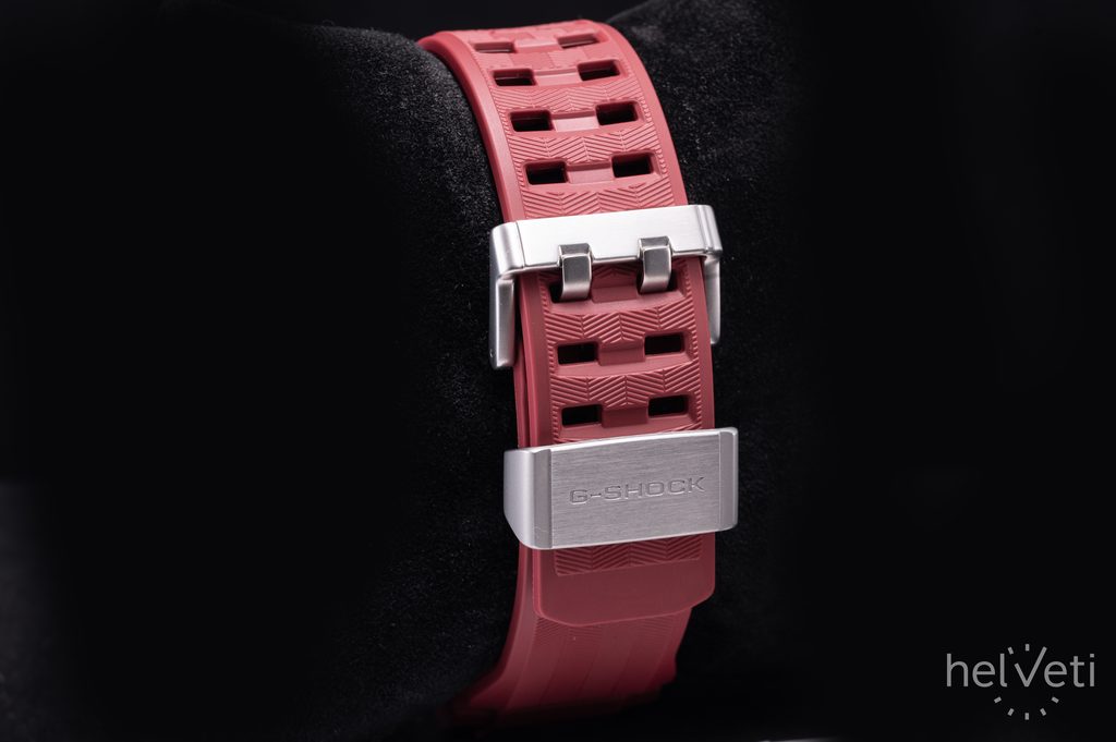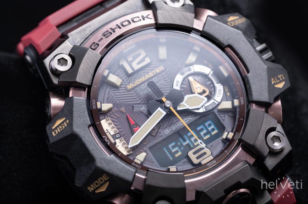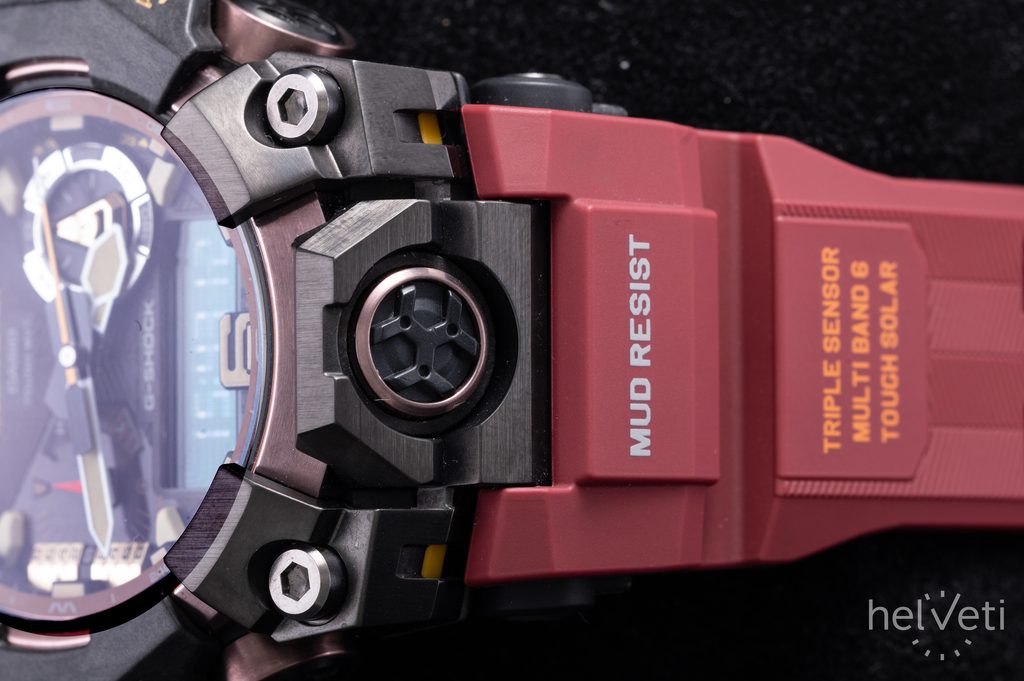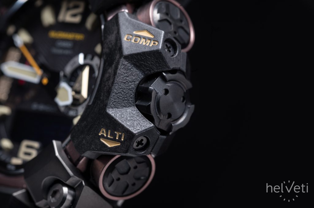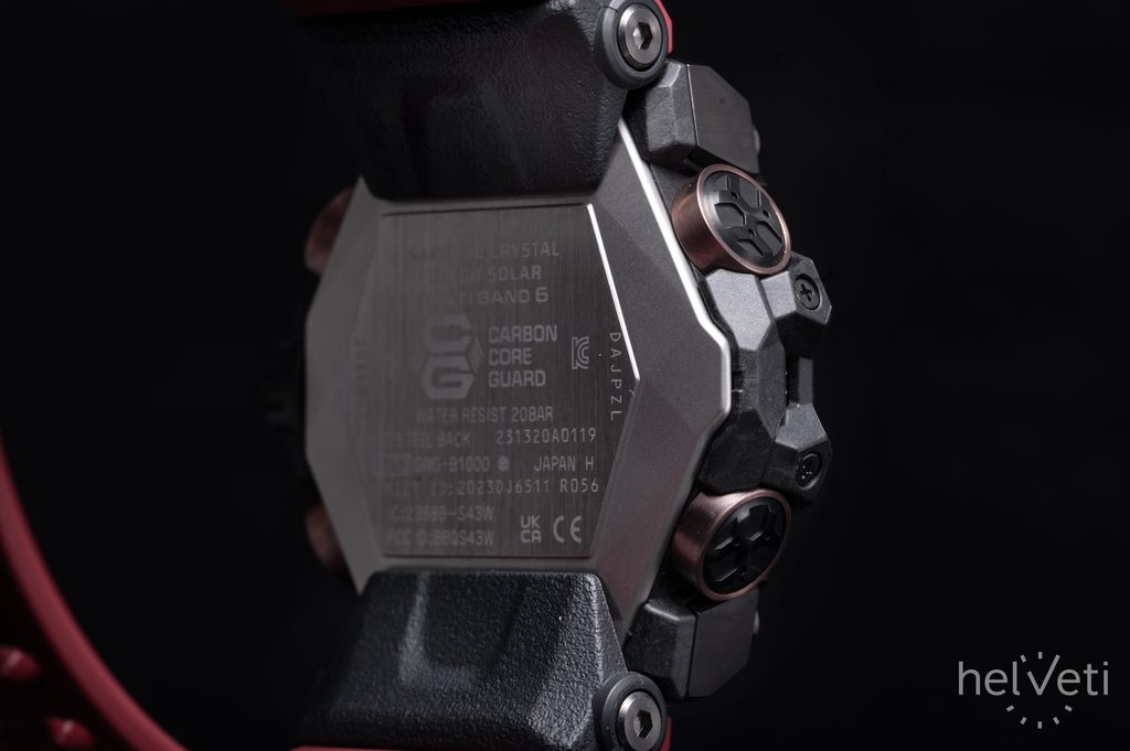 The watch case with Carbon Core Guard construction is made of resin with steel elements, reinforced and strengthened with carbon fiber. The construction allows the case height to be reduced, creating a more compact and lighter unit. The case is complemented by a rubber strap of excellent durability and long life.