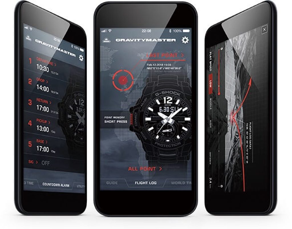 | Functions | Date, Day of the week, Stopwatch, Compass, Alarm clock, Screw-on crown, Backlight, Radio controlled, Bluetooth, Thermometer, Altimeter, Barometer, Automatic calendar, Dual time / GMT, World times, Vibration resistance |