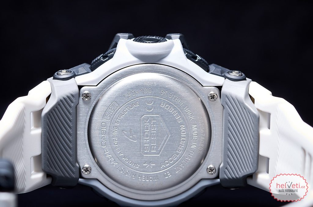 Casio G-Shock G-Squad GBD 100-1A7 have a digital display that shows date, day of the week, stopwatch, alarm clock and many other features. The watch is aimed at athletes, so it includes a built-in pedometer and the ability to connect to your phone via bluetooth, so you can easily track your daily activity. The watch features stopwatch, countdown, interval timer, lap time, tempo, average speed, distance, etc. The watch case, including the strap, is rubber. The dial is protected by a mineral glass. The use of a MIP LCD display ensures excellent readability during the day, and LED display illumination is not missing in low-light conditions. The case diameter of 49.3 mm makes it one of the larger watches. Water resistance of this model is 200 m, so you can easily swim or even dive with the watch.