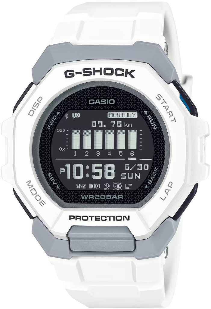 The Casio G-Shock GBD-300 is designed to make training fun. The model emphasizes good clarity and ease of use to enable full use of all the functions the watch has to offer. Among the most important is undoubtedly the ability to sync the watch with a smartphone via Bluetooth technology. The connection, in conjunction with the use of the corresponding mobile app(G-SHOCK MOVE), allows you to keep control of the most up-to-date and accurate time at all times, offering the ability to easily set dual time by selecting one of the predefined 300 cities, set a daily alarm, countdowns for interval training, manage daily activities with easy access to step count information, based on which you can calculate calories burned, meet your daily goal and track other training items. A welcome new feature is the vibrating notification for incoming emails, calls and messages. Useful features include Phone finder - when you press the watch button, your phone will beep so you can find it more easily.