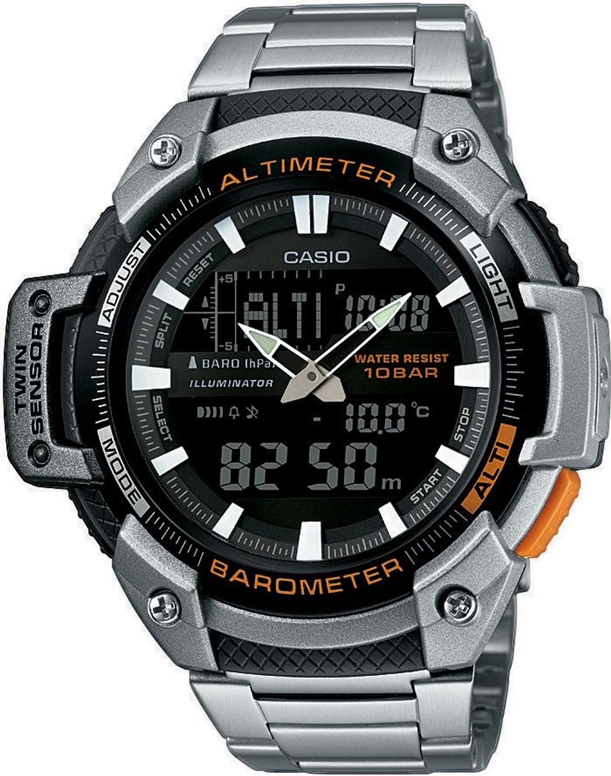 Casio SGW 450HD-1B has a combination dial that displays date, day of the week, stopwatch or alarm. Thermometer, altimeter, and barometer are among the sought-after, outdoor features. The plastic case is completed with a steel tension. The watch is thus very light and pleasant to wear. The 51 mm case diameter makes it one of the larger watches. Water resistance of this model is 100 m, so you can swim with the watch without any problems.