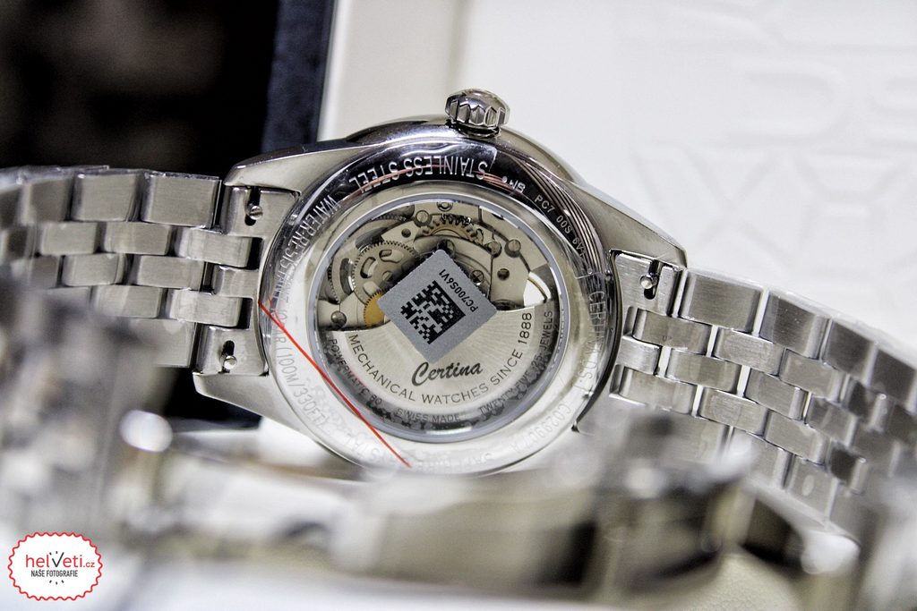 Like all Certina watches, it is equipped with the unique DS technology (Double Security System), which increases the durability, shock resistance and water resistance reliability of the watch (1. reinforced sapphire crystal, 2. seal on the crown shaft, 3. double seal on the crown, 4. special back cap seal, 5. reinforced back cap).