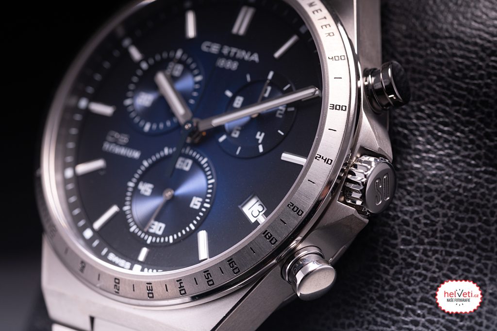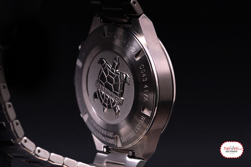 Like all Certina watches, it is equipped with the unique DS technology (Double Security system), which increases the durability, shock resistance and water resistance reliability of the watch (1. reinforced sapphire crystal, 2. seal on the crown shaft, 3. double seal on the crown, 4. special back cap seal, 5. reinforced back cap).