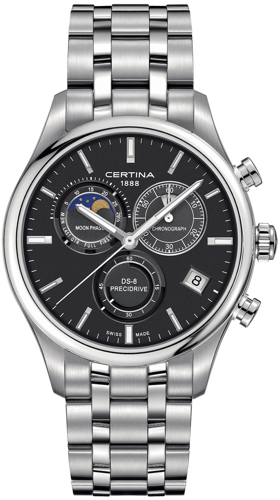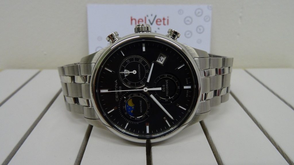 Highly accurate, elegant and at the same time durable, the Certina DS-8 Chronograph Moon Phase C033.450.11.051.00 features a precision Precidrive movement. It is suitable for casual wear and for company, and thanks to the 42 mm case diameter, it fits every man's hand.