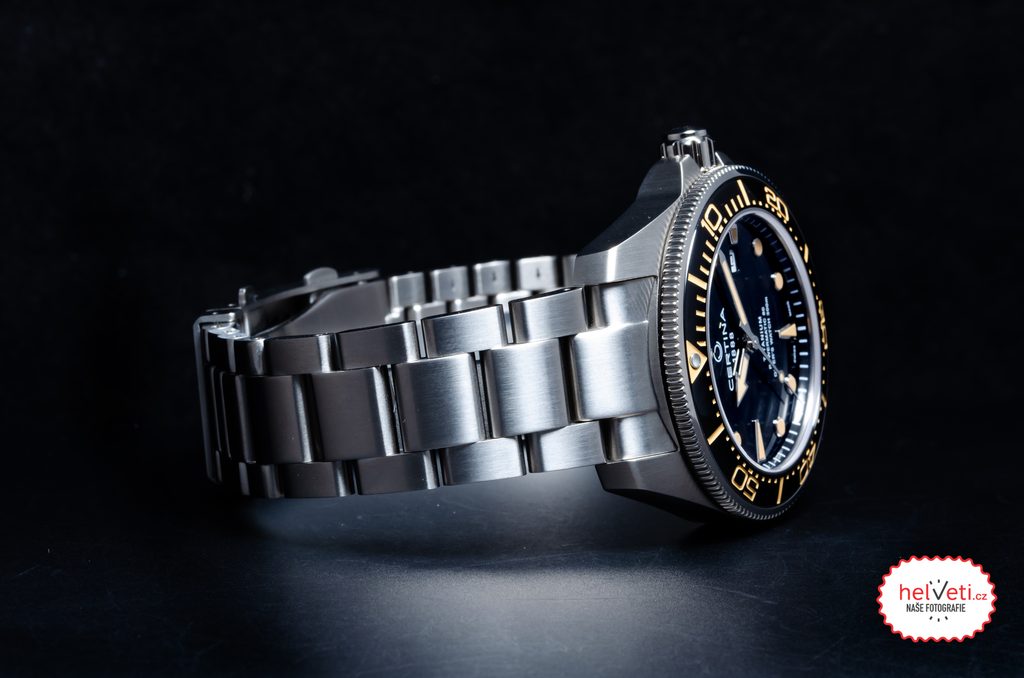 Like all Certina watches, it is equipped with the unique DS technology (Double Security System), which increases the durability, shock resistance and water resistance reliability of the watch (1. reinforced sapphire crystal, 2. seal on the crown shaft, 3. double seal on the crown, 4. special back cap seal, 5. reinforced back cap).