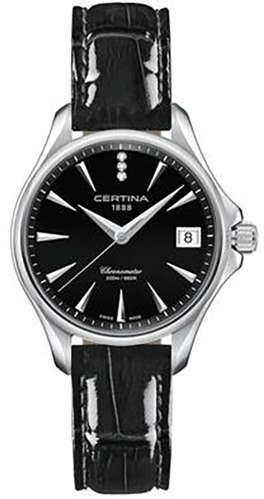 The Certina DS Action Lady DS C032.051.16.056.00 watch wins its owners over with its elegant look, attractive silver-black design, precise workmanship and three diamonds embedded in the dial.