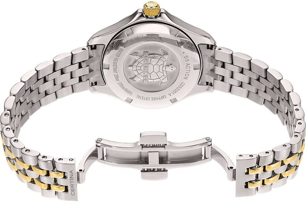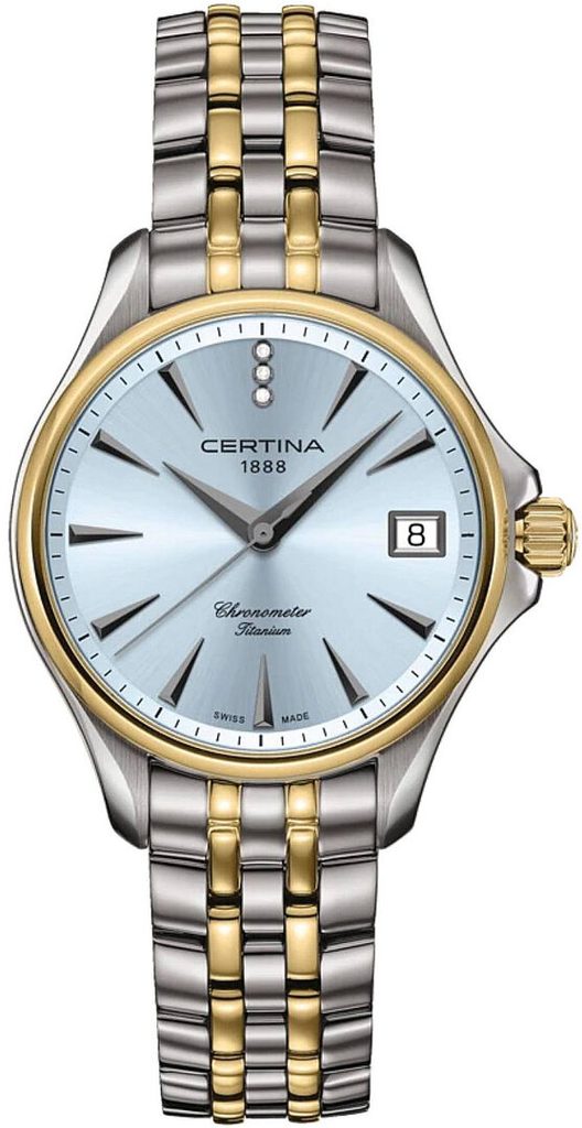 The Certina DS Action Lady DS C032.051.44.046.00 watch wins its owners over with its elegant look, attractive bicolour design, precise workmanship and three diamonds embedded in the dial.
