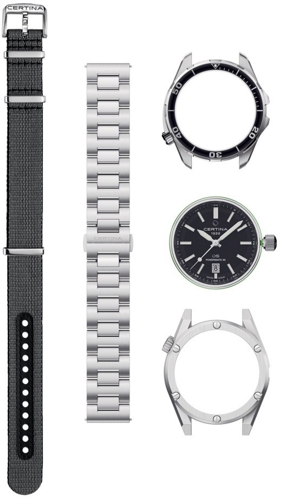 TheCertina DS+ Aqua & Sport Kit C041.407.19.051.00 contains the following components:
