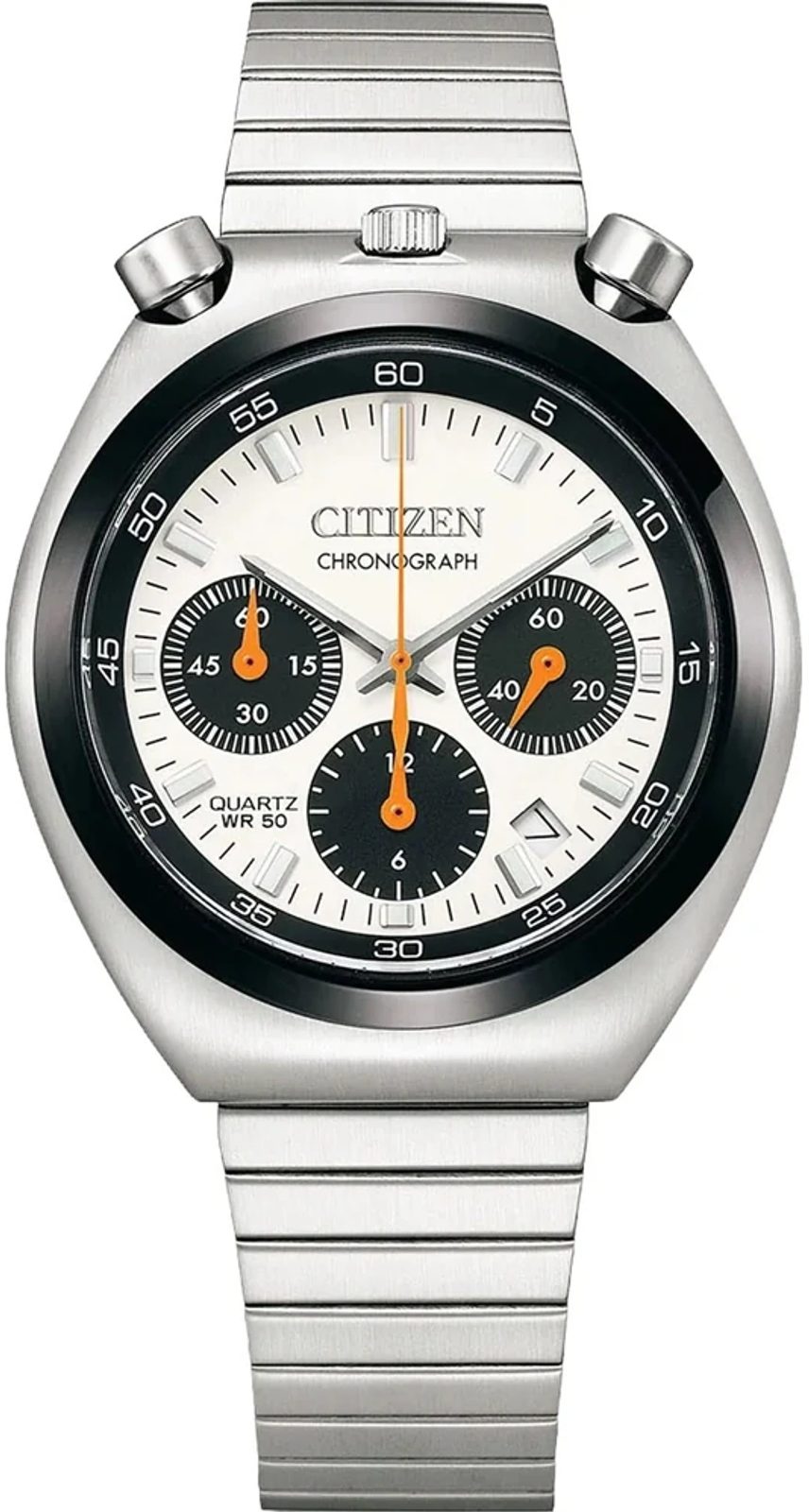 The case of the watch is made of stainless steel, as is the bracelet. The case has a diameter of 38 mm, which is a faithful reference to the original size of the 1970s model. Inside the case works the in-house Citizen 0510 movement, which has a date display and stopwatch function.