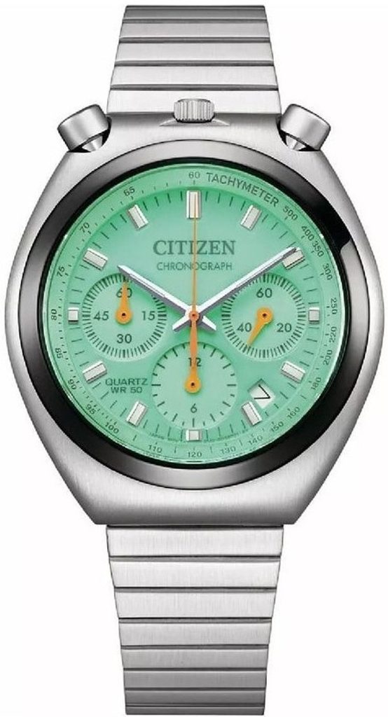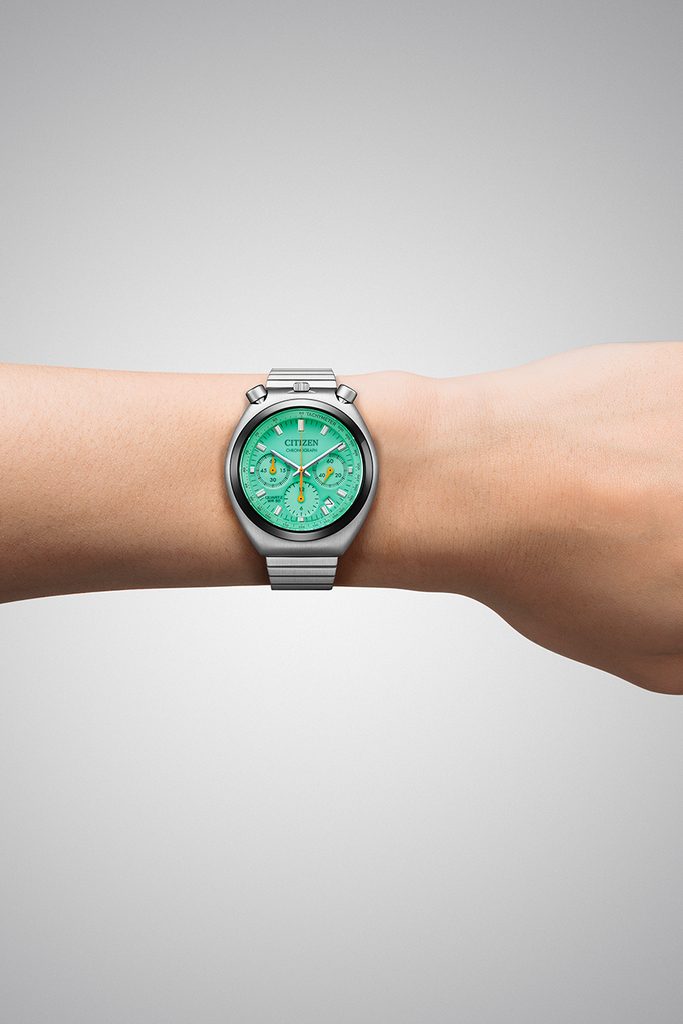 The case of the watch is made of stainless steel, as is the bracelet. The case has a diameter of 38 mm, which faithfully refers to the original size of the model from the 1970s. Inside the case works the in-house Citizen 0510 movement, which has a date display and stopwatch function.
