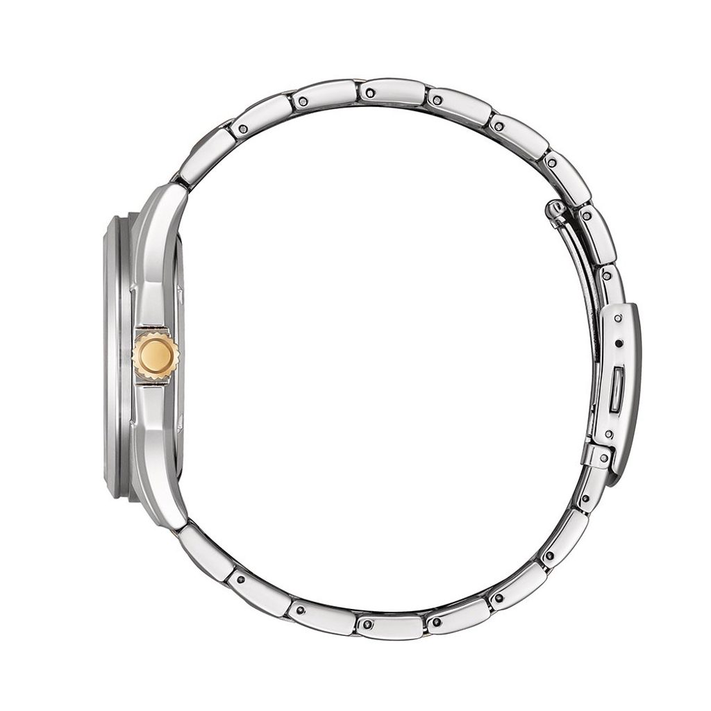 The Citizen AAW1756-89A has a case made of stainless steel and stays on the wrist thanks to a steel bracelet, both with a partial PVD finish in rose gold. Inside the case is the in-house Citizen J810 movement, which features a light rechargeable battery with a power reserve of up to 8 months , as well as a low battery indicator function. A handy feature is then the date display at the 6 o'clock position. The clear dial of this model is protected by a mineral glass.