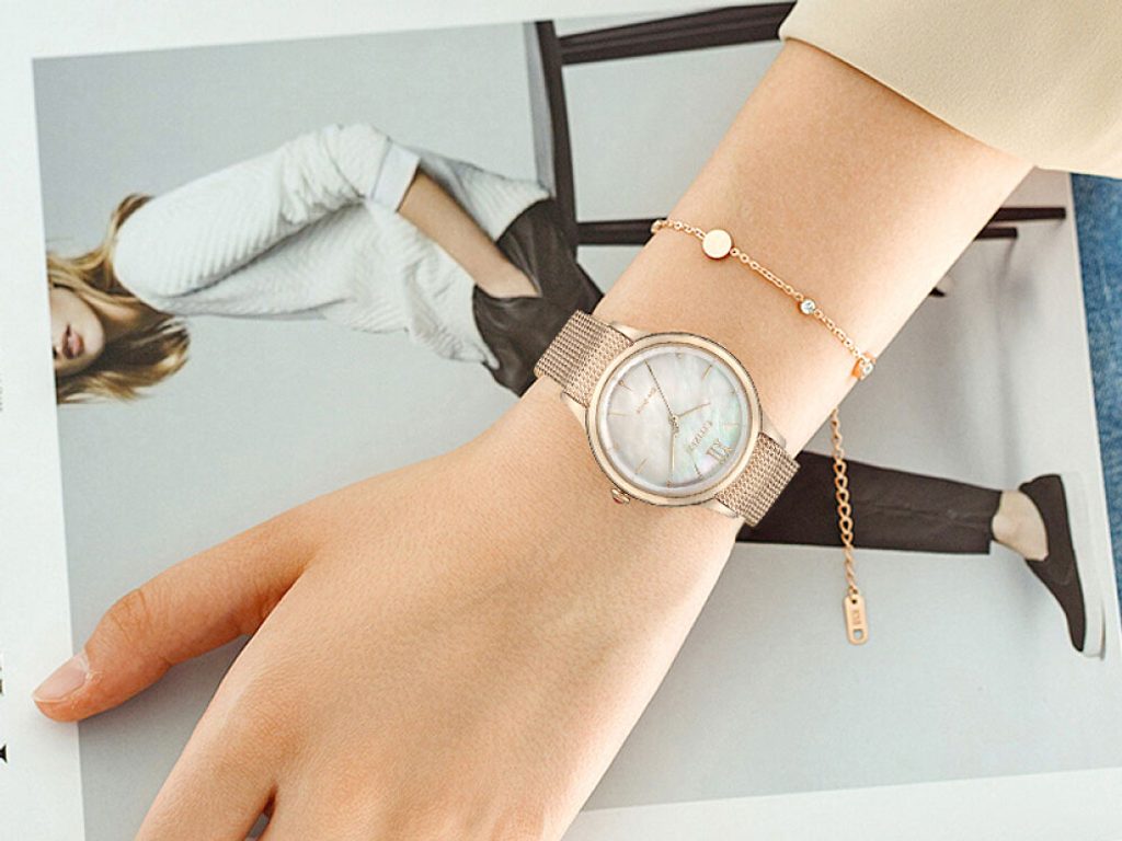The elegant dial is protected by a sapphire glass that is maximally scratch resistant. The water resistance of this model is 50 m, so it can handle basic contact with water, such as rain or a shower. This watch is great for everyday wear, but also as a social accessory.