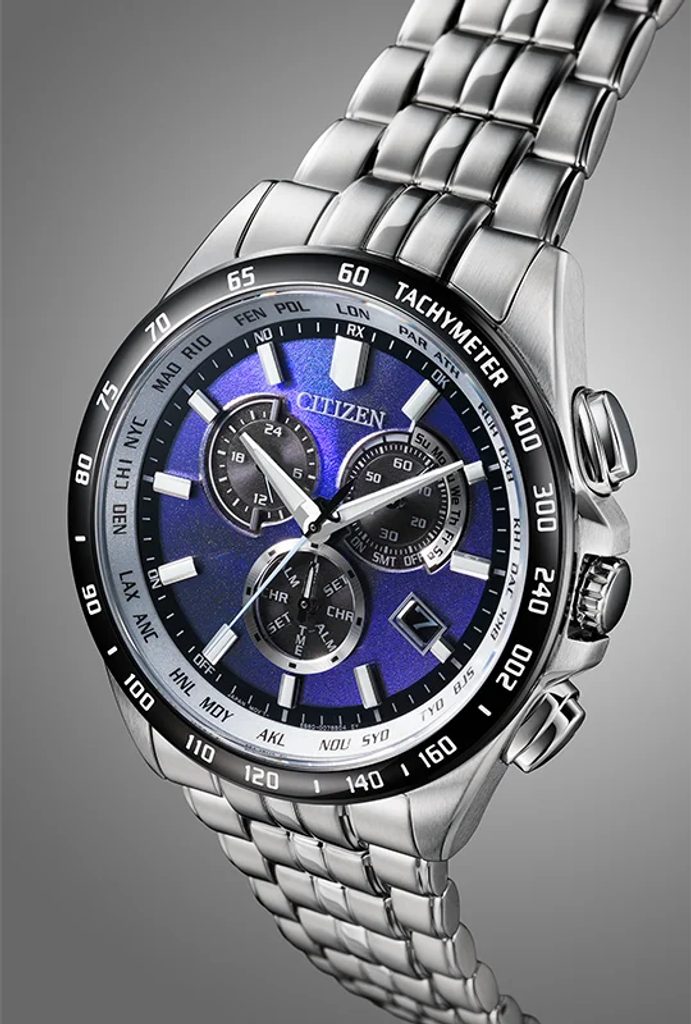 The case including the bracelet of the Citizen CB5874-81L is made of stainless steel. Inside this case works the in-house Citizen E660 movement, which offers absolutely accurate time thanks to the Radio-Controlled system, i.e. synchronizing the time using a radio signal. You can also rely on other functions such as battery indication, overcharge prevention, warning of insufficient charge by two-second jumps of the second hand, or switching to power-saving mode. A stopwatch function, alarm, or 24-hour sub-dial at the 10 o'clock position can also be used. Very practical is the date and day of the week display.