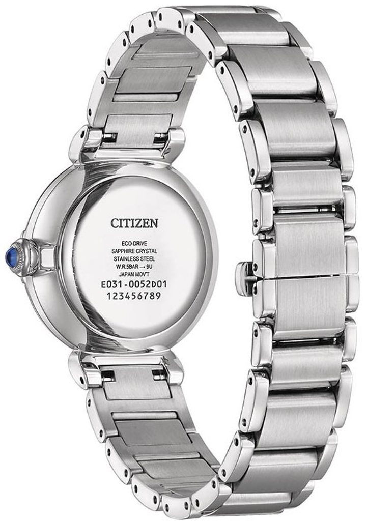 The Citizen EM1060-87Y has a case made of stainless steel and is complemented by a tasteful steel bracelet. Inside the case, the in-house Citizen E031 movement operates reliably, featuring a light-charged battery with a power reserve of up to 6 months and also has a low battery indicator function.