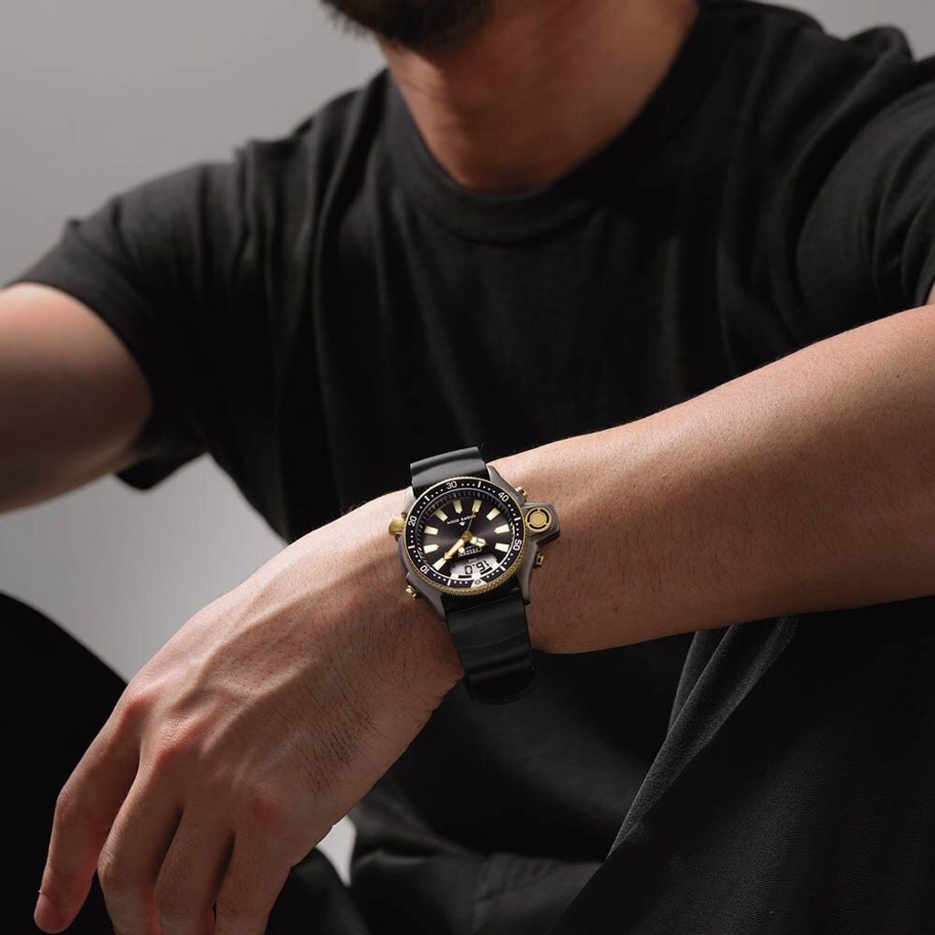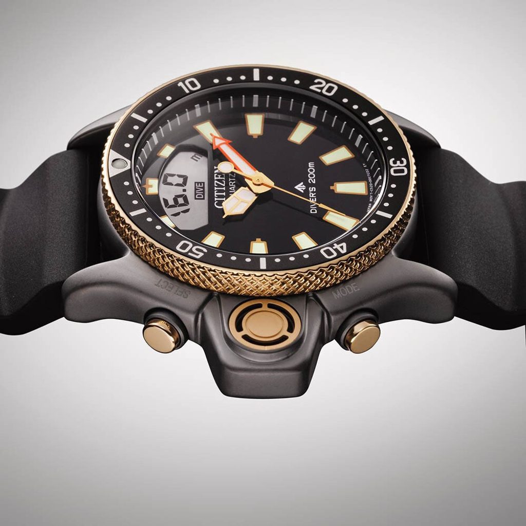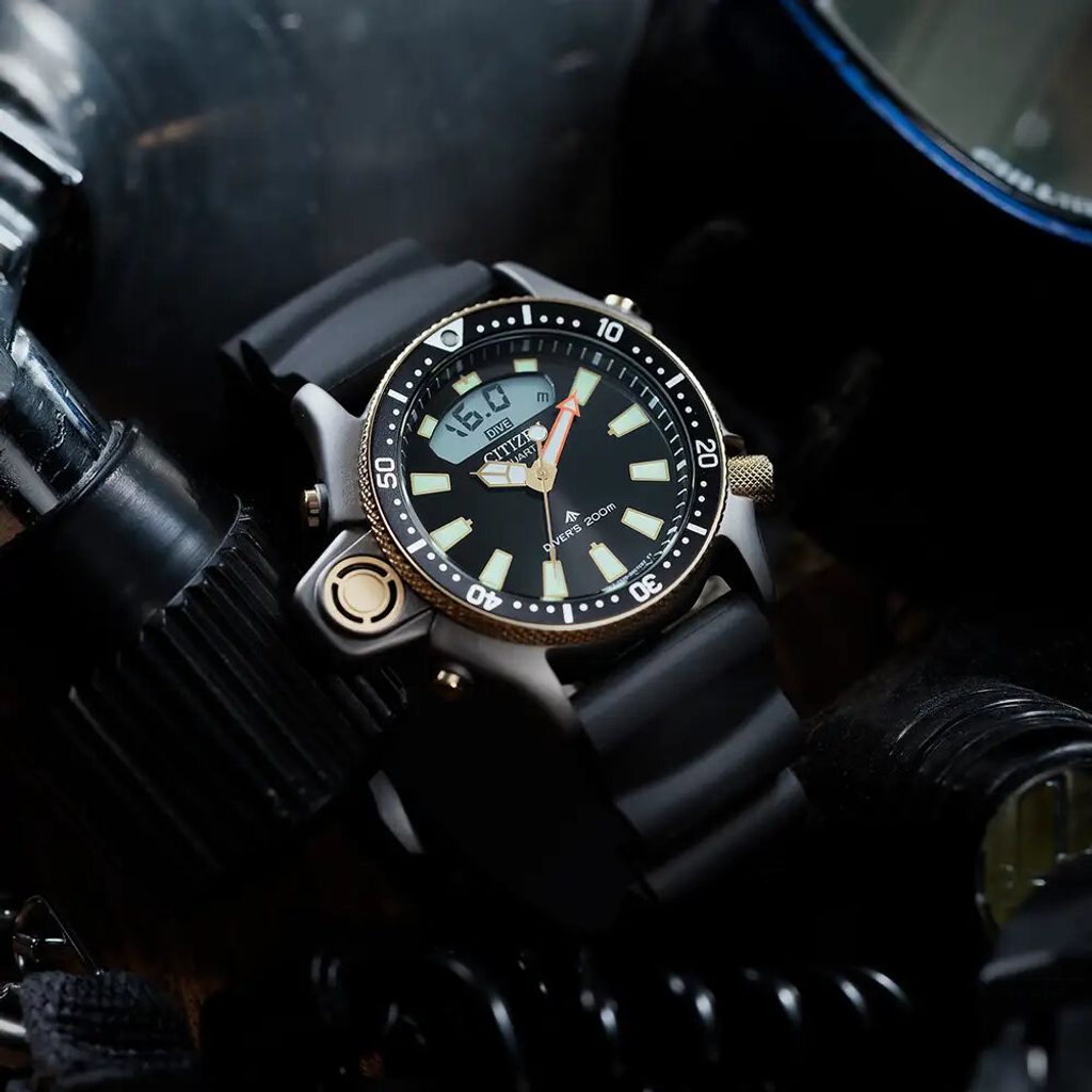 The top-of-the-line Citizen Promaster Aqualand 40th Anniversary Limited Edition JP2008-06E is part of the world-renowned Promaster series, featuring multi-purpose watches equipped with outstanding functions. It wins its owners especially with its equipment and high durability. This model was produced to commemorate the 40th anniversary of the launch of the original Citizen Aqualand in 1985. It was the first Citizen dive watch with an electronic depth gauge. This limited edition was produced in only 5,800 pieces for the entire world.