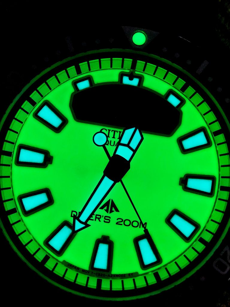 Fully luminescent dial, hands and indexes |