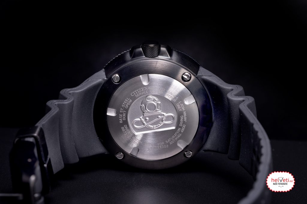The water resistance of the Citizen Promaster Marine Divers BJ8055-04X is 300 m and is therefore suitable for use in water, including deep diving. The water resistance is supported by a screw-down crown. This model even meets the ISO 6425 diving standard, which can be clearly read from the "Divers" inscription on the dial. This means, for example, declared resistance to magnetic fields, testing at 125% of the claimed water resistance value, or the need for a unidirectional rotating diving lunette. Better readability in low light conditions is provided by the luminescence applied to the indices and hands, as well as the all-luminescent dial.